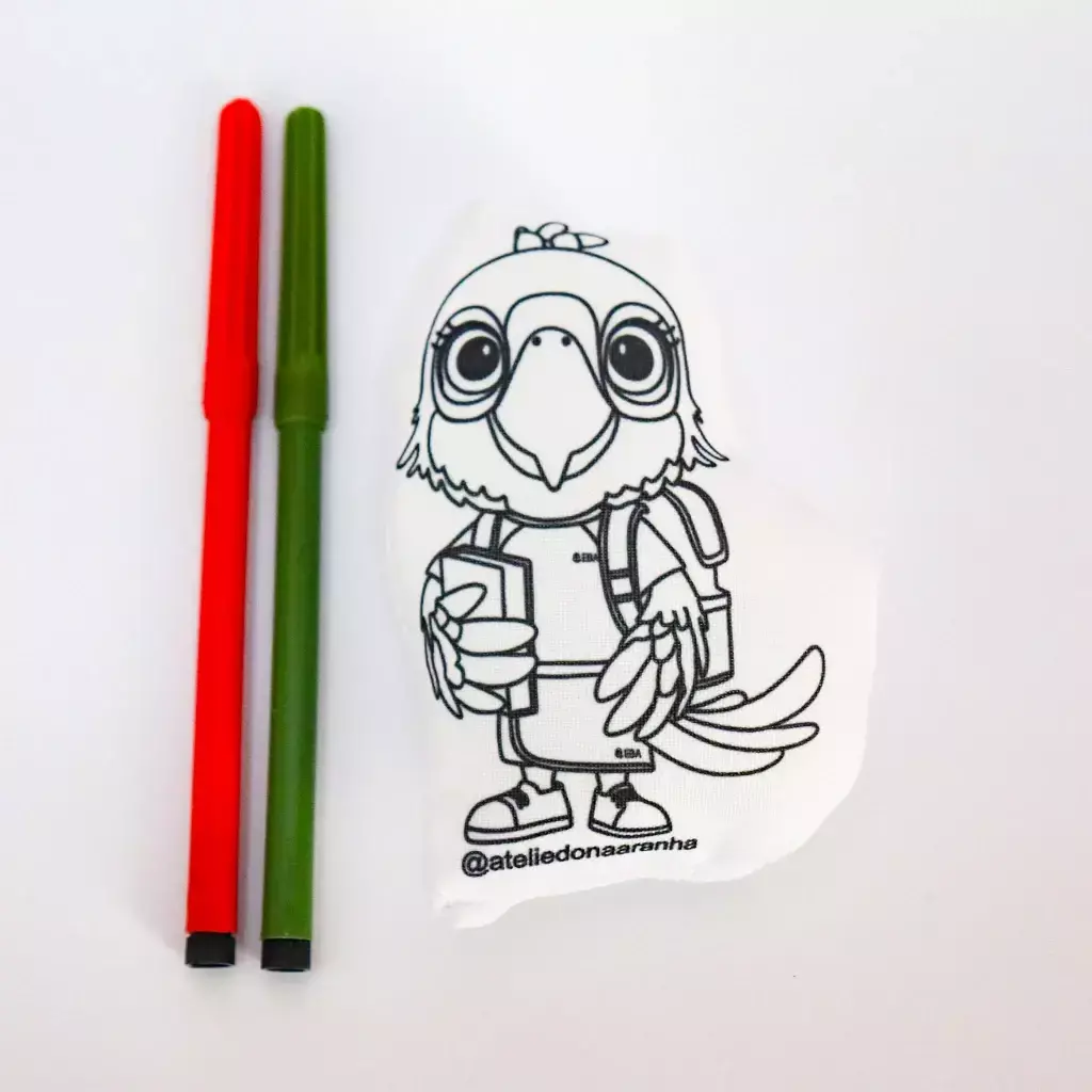 Acompanha 2 canetinhas de cores sortidas com tinta não tóxica.